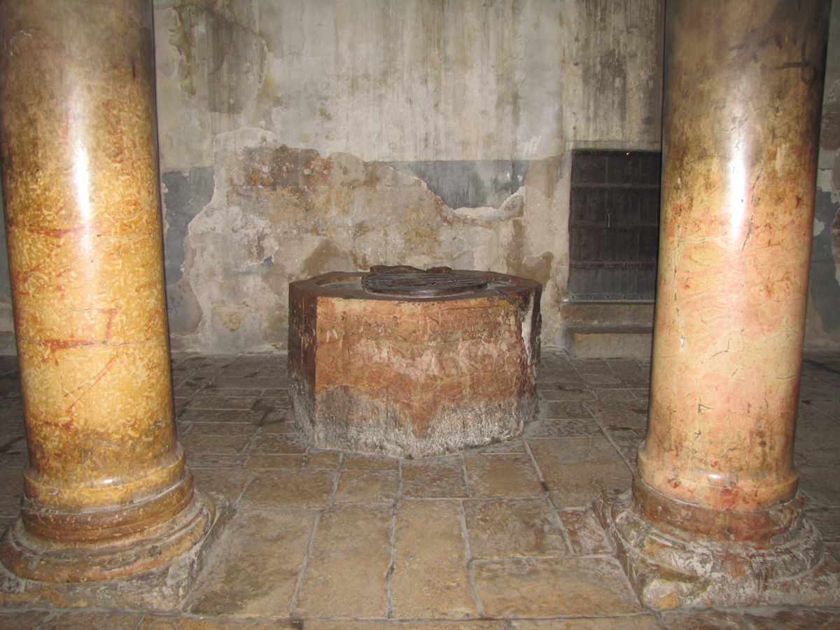 A octagonal baptismal from the 500's AD for the church that Justinian built. This originally sat over a cistern closer to the altar, but the crusaders remodeled this church around 1000 AD which included moving this baptismal and painting fresco images on Constantine pillars from 326 AD