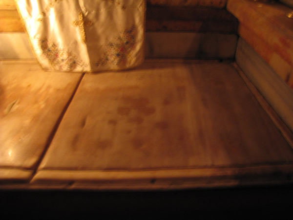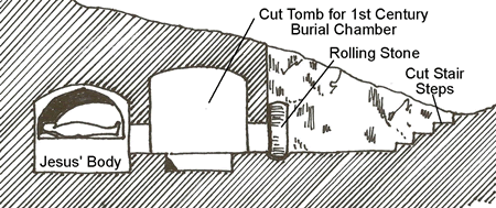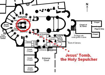 The original rock that surrounded the tomb was removed by Constantine beginning in 326 so that only a large square rock block was left surrounding the tomb. In 1009 the Muslim Caliph from Egypt, al-Hakim, completely destroyed the Church of the Holy Sepulcher and crushed the stone block around the tomb that was left by Constantine. The only portion of the tomb that was spared was the burial bench because it was covered in the rubble. Today the burial bench exists but is covered with a marble slab to preserve what is left from visiting Christians who chipped away at it in order to get a piece of the tomb. (Details)