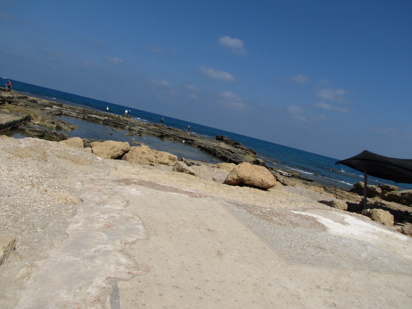 Herod's palace and the governmental buildings in Caesarea by the Mediterranean Sea. The judgment hall in the foreground is where Paul would have appeared before Festus, Felix and Agrippa in Acts 25:13-26:32.