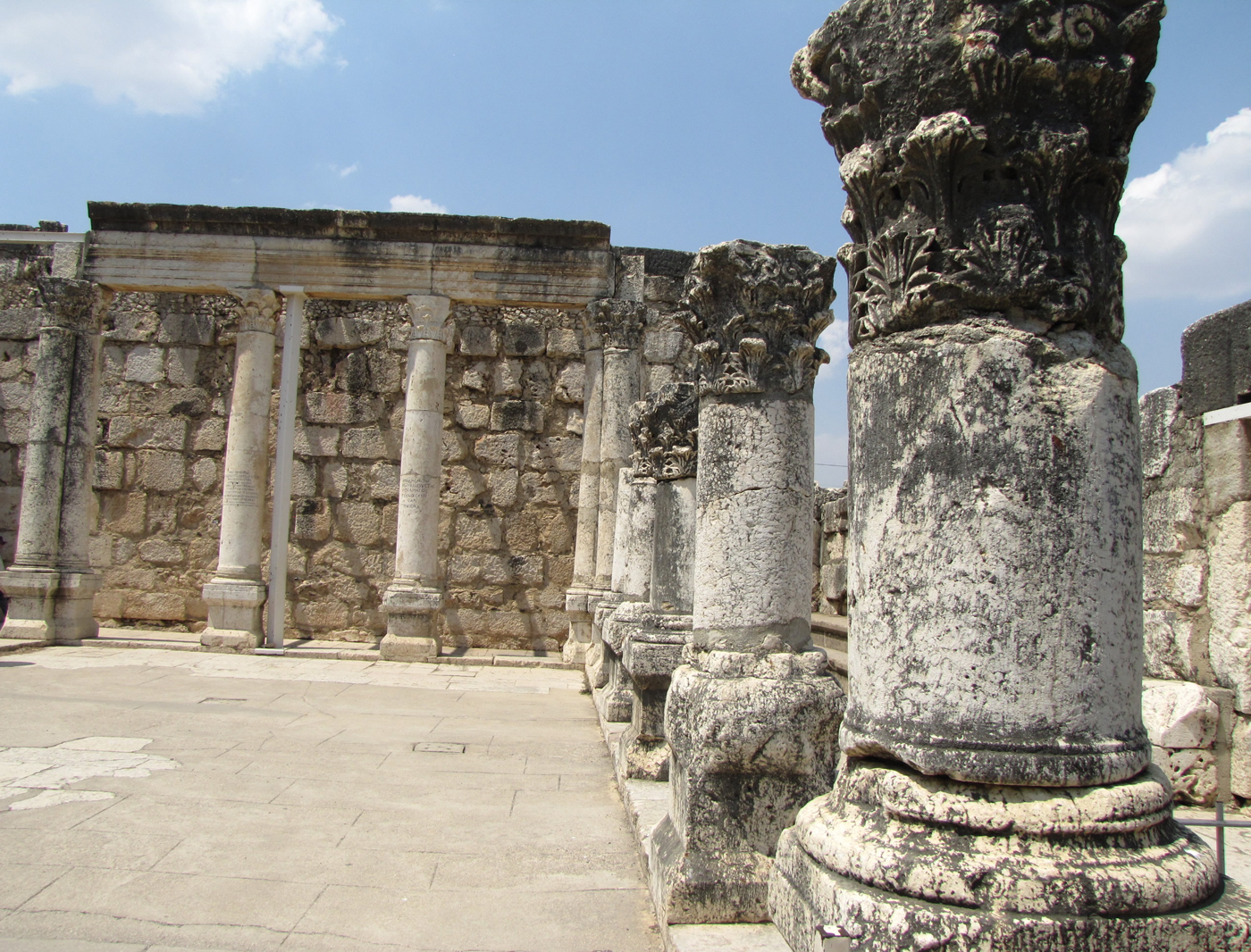 Inside the synagogue in Capernaum whose foundation dates back to the day that Jesus preached here in Mark 1:21.