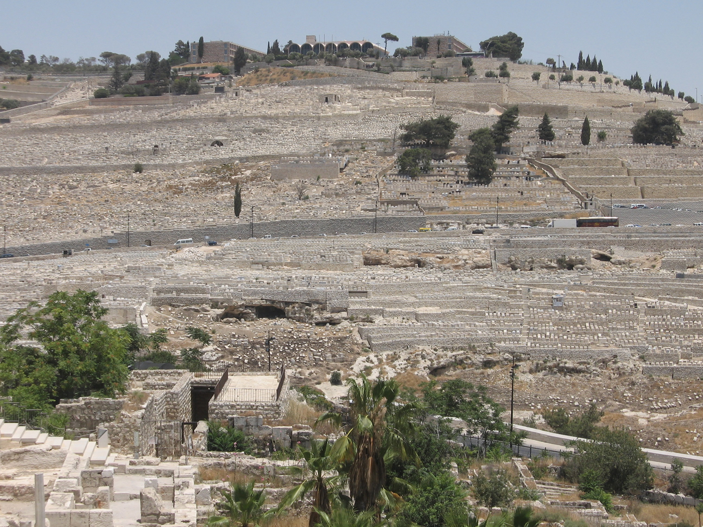 A view of the graves on the west side of the Mount of Olives as seen from the east side of the Ophel south of the Temple Mount.
