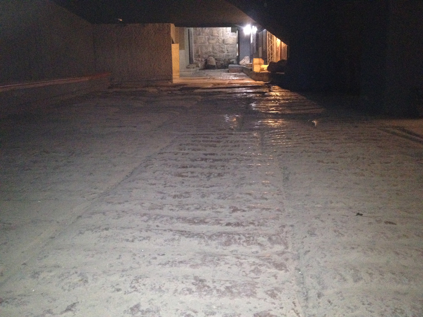 Galyn stands by some of the Herodian ashlar stones at the south end of the Eastern wall of the Temple Mount, which is also the east wall of the Old City Jerusalem. (Details)