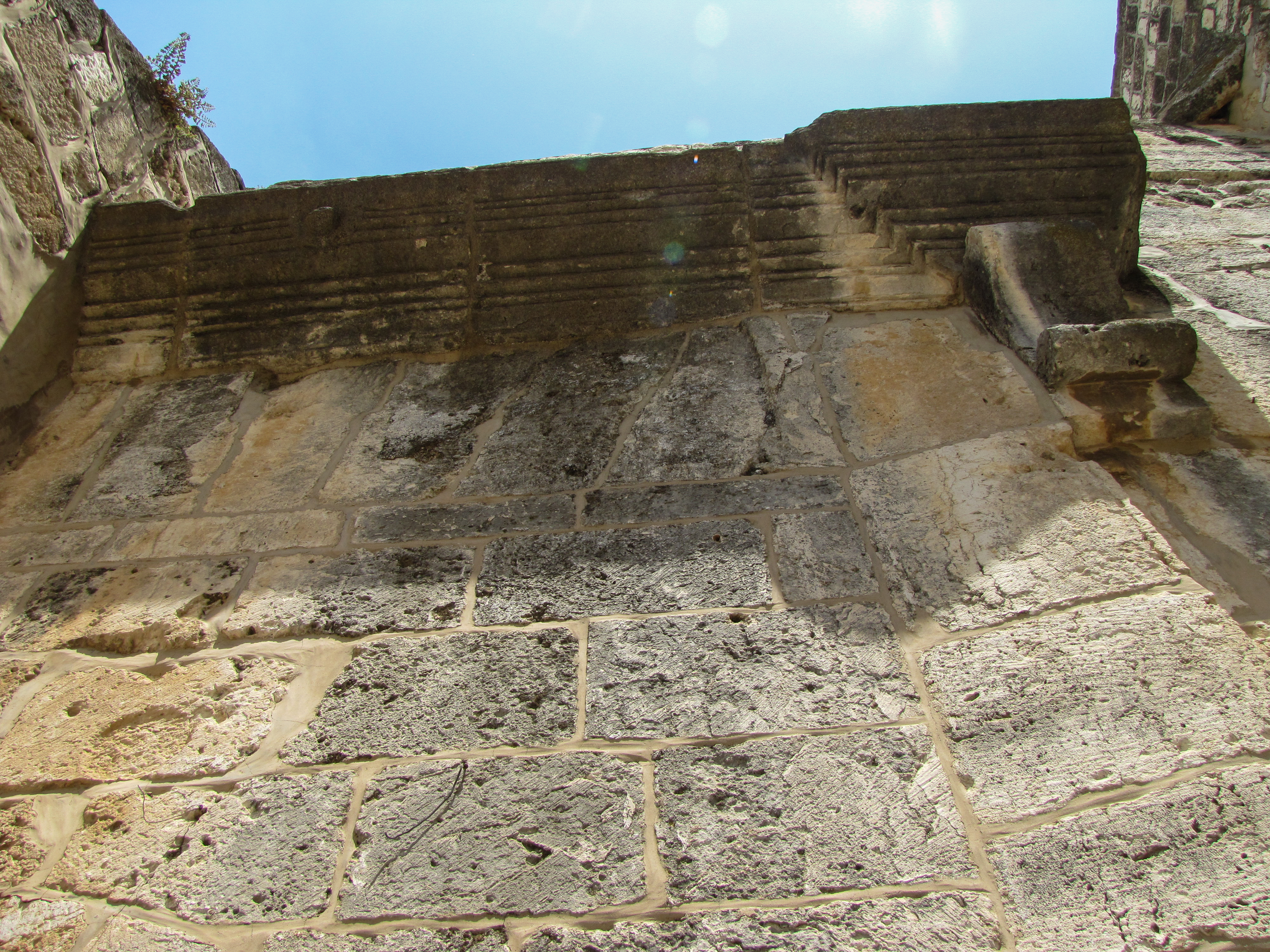 Front of the church above the entrance. The top of the original opening (now blocked shut) can be seen at the bottom of the photo.