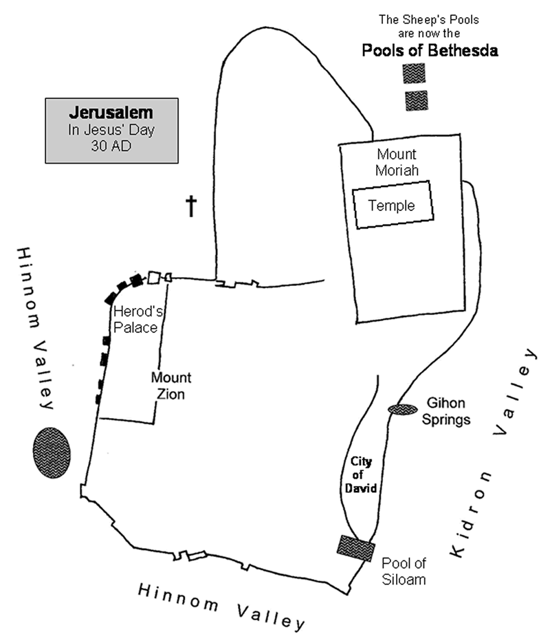 Mount Zion sits on the south end of the Western Hill and the Hinnom Valley bends around Mount Zion’s west and south sides.