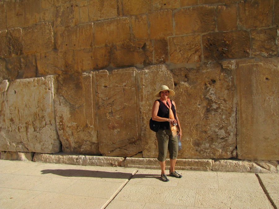 Galyn Wiemers stands by the largest ashlar stone in the retaining wall of the Temple Mount. This ashlar stone is one of four stones that create what is called the Master Course. This stone is 41 feet long and weighs 570-630 tons. It is 15 feet wide and 11.5 high. The largest of the Master Course Stones here is 44 feet.