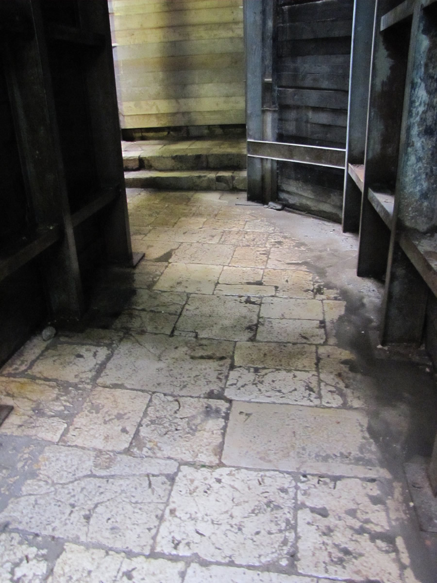 This is a photo of the gutter that runs under the stepped stone street. This gutter system would collect runoff rain water from the city and drain it toward the