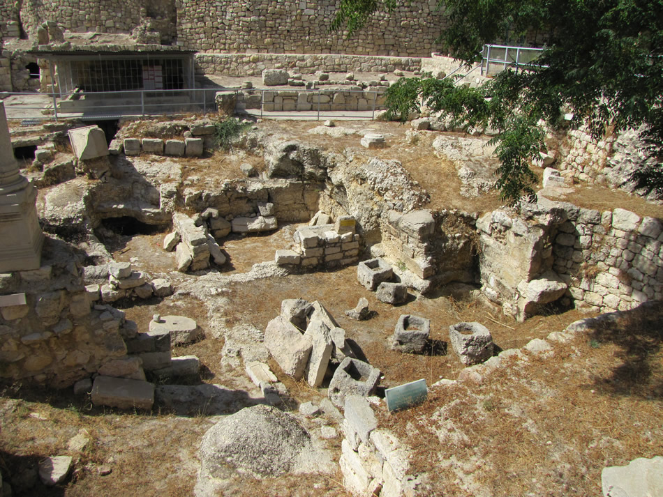 Water is still found under the vaulted rooms that supported the Byzantine church which was built over the northern pool around 350. It was destroyed in approximately 614. |