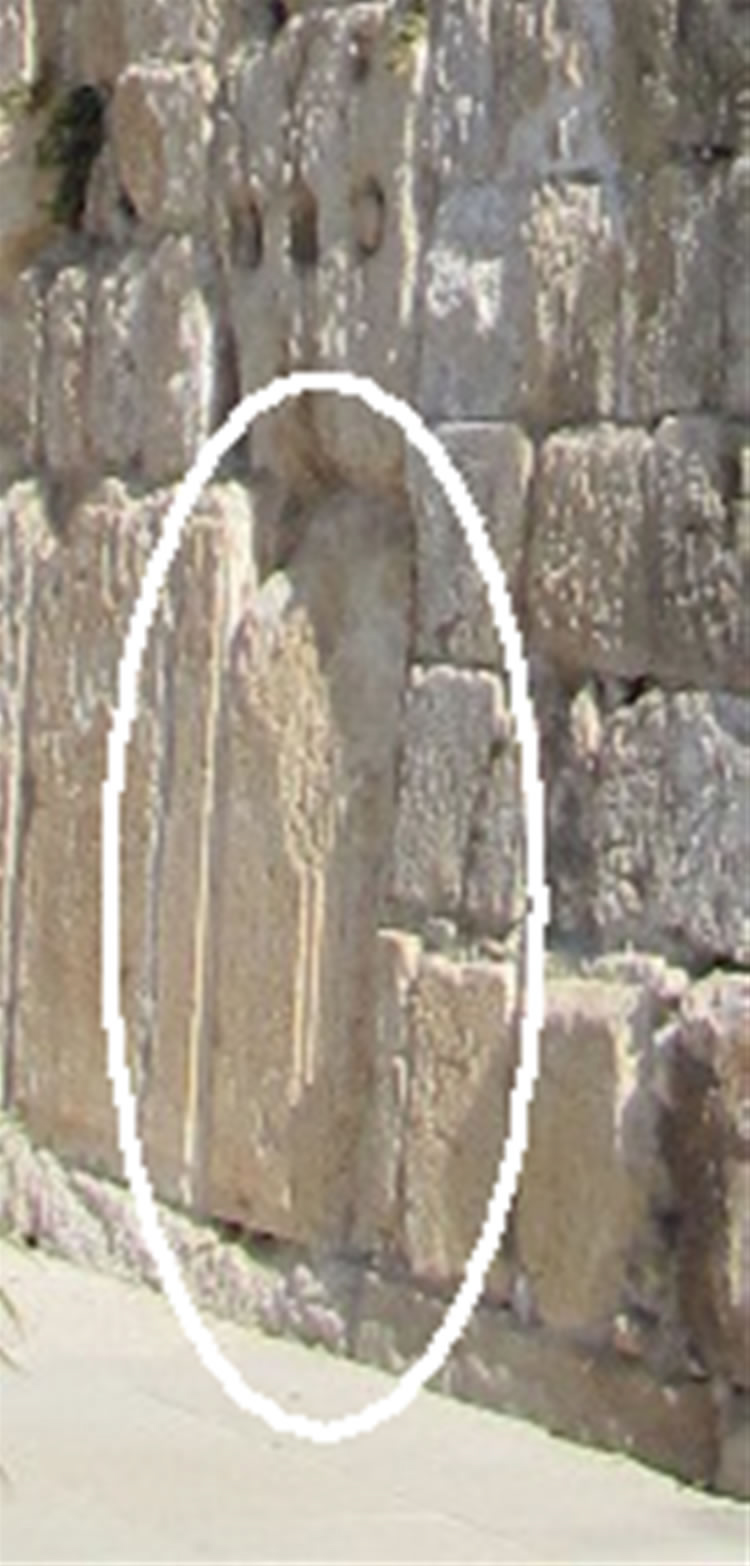 Further to the east on the south wall is the Single Gate. It was cut by the Knights Templar and is not original to the Temple Mount. The Crusaders used this gate to access the caverns below the Temple Mount, where they kept their horses. The caverns are called “Solomon’s Stables.” The gate was blocked shut by Saladin in 1187 when the Muslims returned. Below this arch are the remains of other arches that supported the Herodian street that ran the full length of the southern wall. The vaulted rooms created by this arched support system were used as shops. The intense heat from the Roman fire in 70 AD seared the wall below the Single Gate, and created burnt impressions of the arches. Theimpressions burnt onto the Herodian ashlars still clearly show where these shops and their vaulted walls stood.