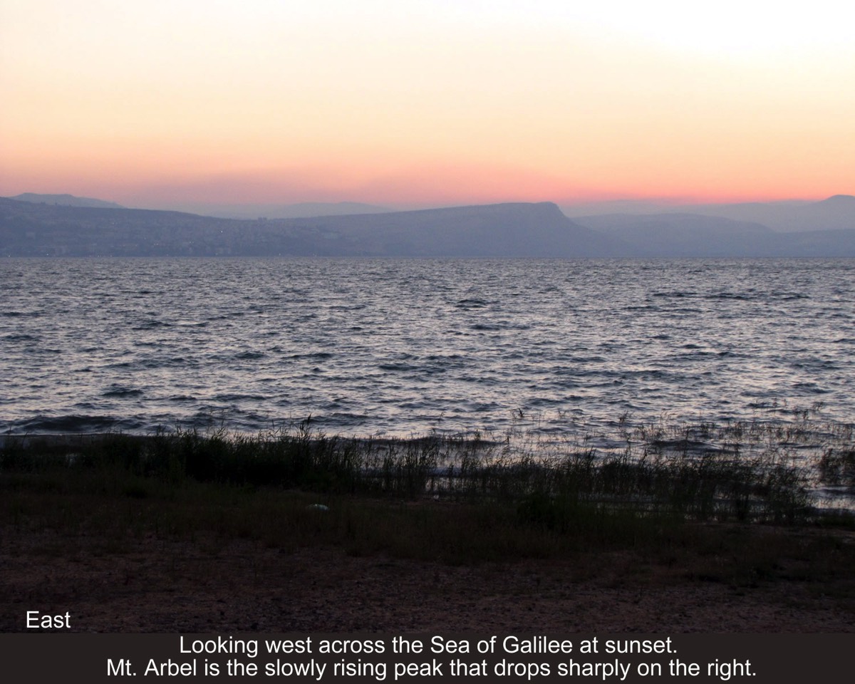 Num. 34:11, mountains on east shore were eastern boundary of the land of Israel;